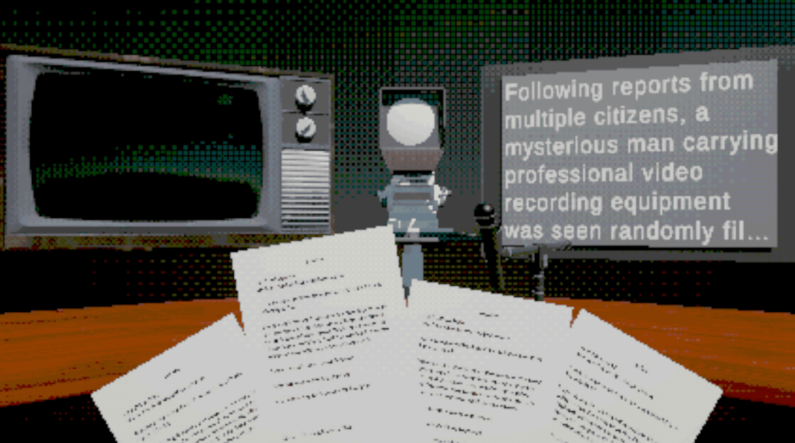 During the conceptualization process, we considered how to incorporate Analog Horror elements into an interactive game, making it more than just a "walking simulator"—it would be more playable. Our first thought was the news anchor, as this profession frequently appears on television, making them a perfect protagonist for a simulated horror game.